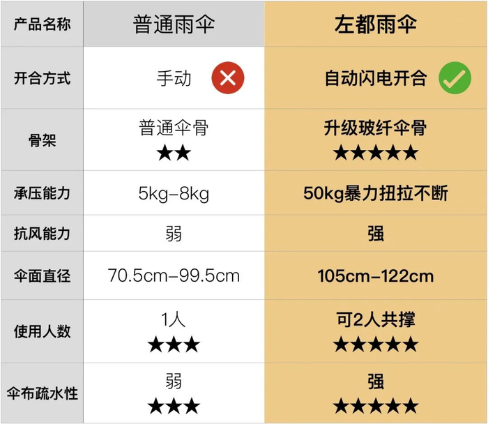 左:左都1代雨伞 右:普通雨伞