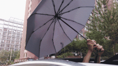 要想撑出男主角的优雅,伞得“自动”才到位,手动开合再快,上下车也肯定会被淋湿。