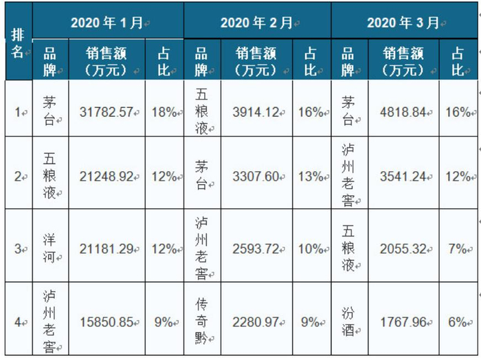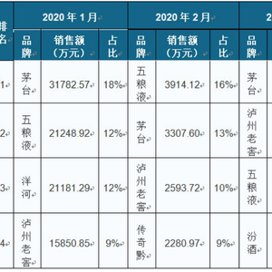 2020年1-3月国产白酒阿里渠道热销品牌排行榜TOP4