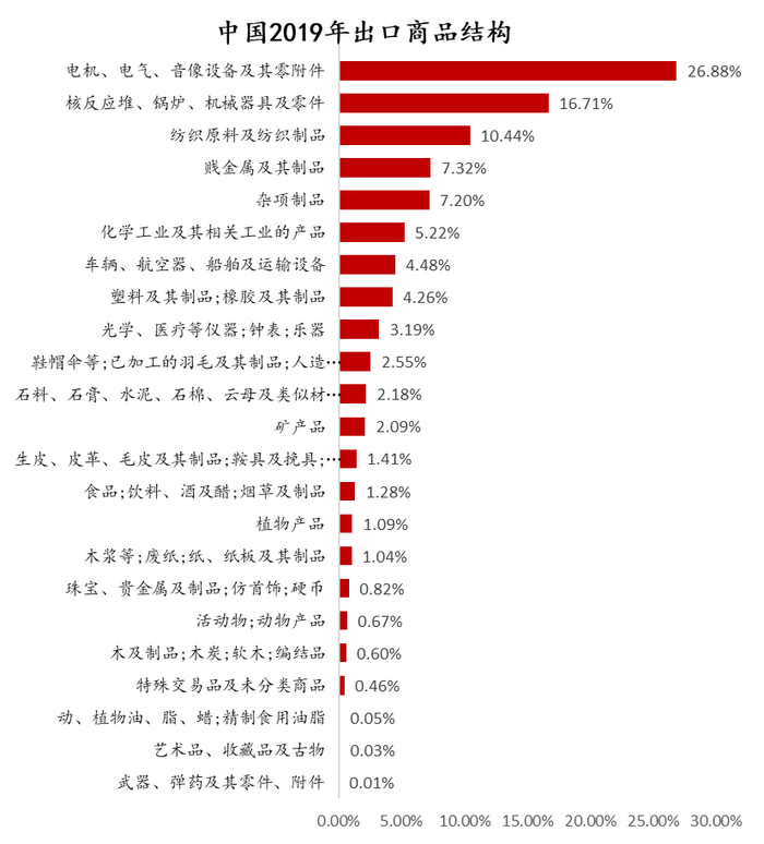 图3:对疫情扩散重点国家的出口商品结构(2019)