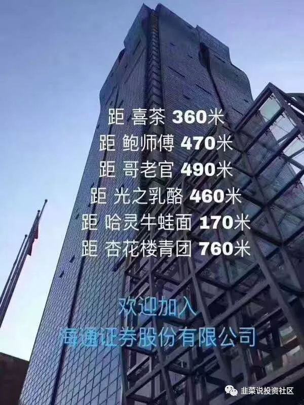 而海通证券则因为有员工在网上晒4块钱的年终奖到账短信而被广泛调侃。同时由于地处人民广场,员工的地理位置优越感很强,故而称为人民广场瑞信。地理位置的好处如图所示。