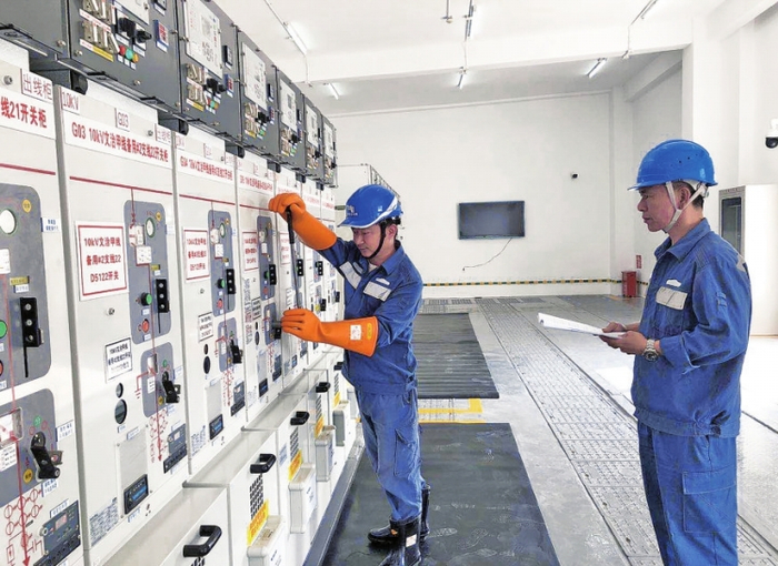 海南琼海供电局配电中心工作人员正在对新投入智能电网配电房进行调试,确保博鳌乐城低碳智慧能源与智能电网综合示范区项目按期投产。 卢传隆 摄