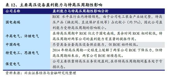 结合ROE水平及其受特高压周期的影响,主要的高压设备企业大致可分为5类,其中,国电南瑞盈利能力突出,平高电气、许继电气次之。
