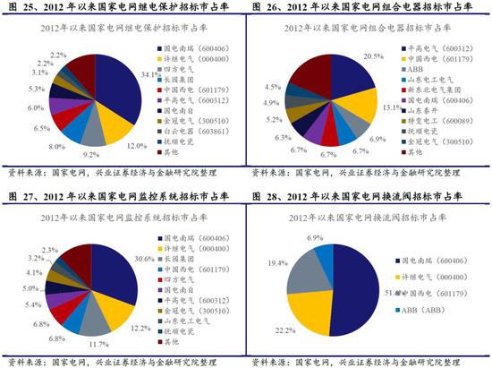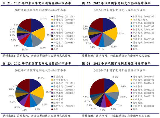 高压设备行业市占率高度集中,少数厂商集中占有大部分产品的主要市占率。整体来看,中国西电、国电南瑞、平高电气、许继电气是最主要的高压设备供应商。