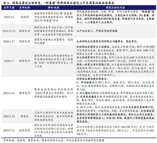 ● “新基建”背景下特高压建设加速带动电网投资上台阶,高压设备需求有保障。2020年特高压核准、开工、建设全面加速,涉及的16条线路、13个改扩建项目总投资额合计约为2097亿元,同时,我们预计本轮特高压建设将带动配套线路投资约805亿元。