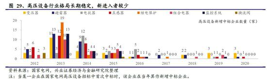 高压设备行业格局长期稳定,新进入者较少。2009年建成第一个特高压试验工程投运后,大量电力设备企业开始研发高压设备,2012-2015年间国网招标平台中高压设备新增参与者较多,但2015年以后新进入者数量明显减少。