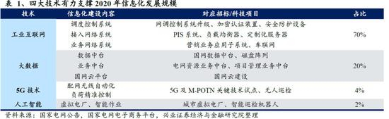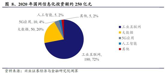 我们认为2020年信息化建设的主要技术支撑包括工业互联网、大数据、5G、人工智能四大部分,总金额约在250亿元,工业互联网仍占据主要市场,份额70%左右,大数据应用占据20%左右。