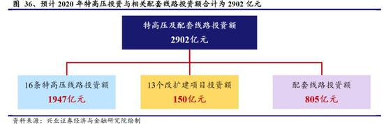 预计2020年特高压投资与相关配套线路投资额合计为2902亿元,其中:2020年特高压加速复工、开工线路涉及投资额合计为2097亿元(包含150亿元改扩建投资项目), 除特高压线路建设、改扩建项目以外,预计本轮特高压周期将带动约805亿元配套线路投资。