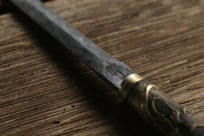 经由猝火、退回、火回等十二道工序,自然形成规则的流水花纹,锋芒毕露。