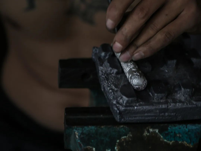金属配饰采用纯手工,使用汉族传统工艺 — 錾刻。