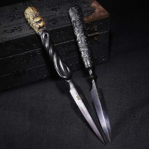 刀刃采用百炼花纹钢手工折叠锻打。