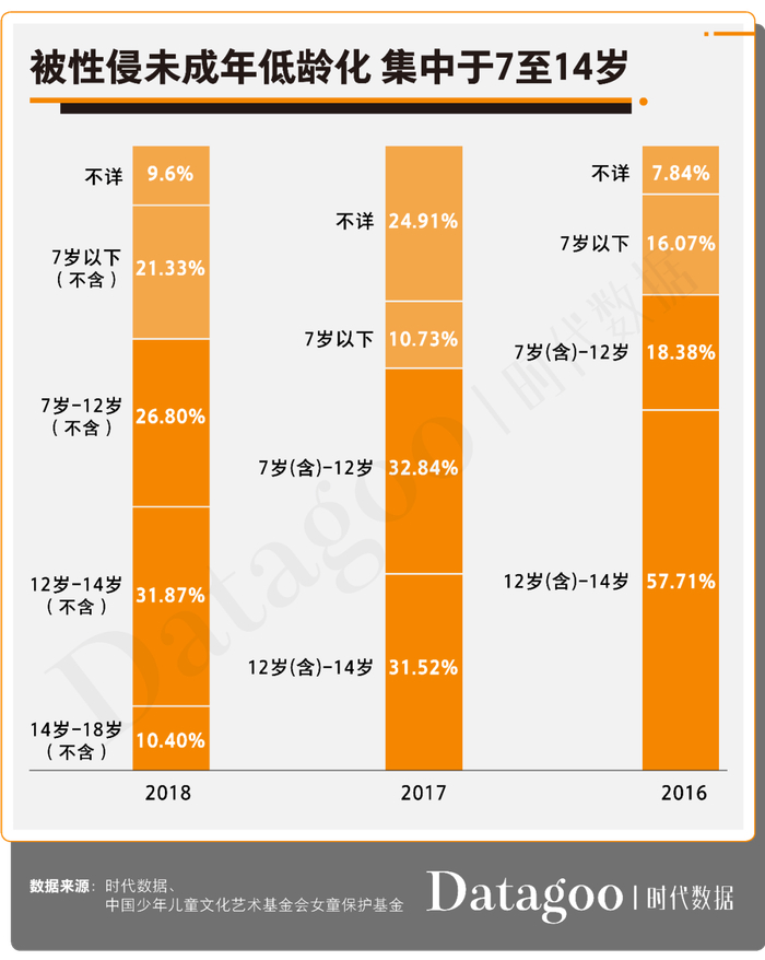 而且被性侵的儿童年龄呈低龄化,平均年龄在12岁左右。这一因素也直接导致了未成年人性侵案件不容易被发现。不少遭受性侵害的未成年人及其监护人往往不愿公开寻求法律保护或是没有意识到“自己被性侵了”,而受害人成年后再寻求民事法律方面的救济时已超过诉讼时效期。