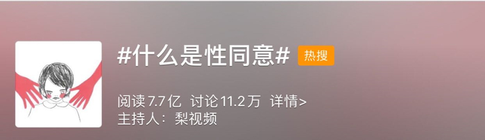 鲍毓明涉嫌性侵案在互联网上引发巨大声浪。其中关于性同意的讨论最为激烈。截至14日,阅读量达到7.7亿。