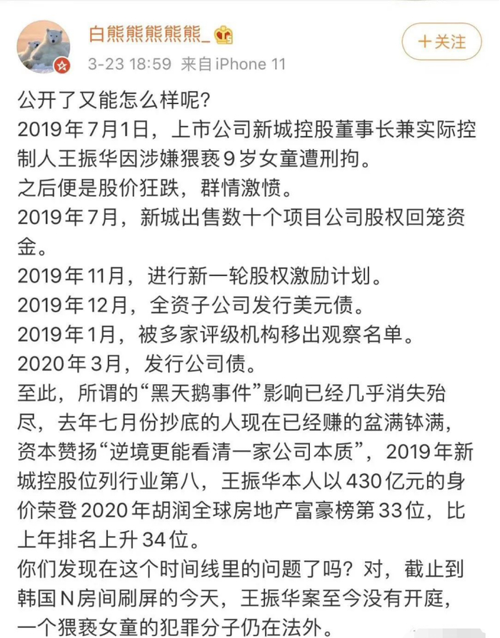 在文章被刷屏后,与这起案件同样类型,同是上市公司,同样引起轰动的另一起“高管猥亵幼女”案——新城控股董事长王振华涉嫌猥亵儿童被上海警方刑事拘留,重新获得关注。