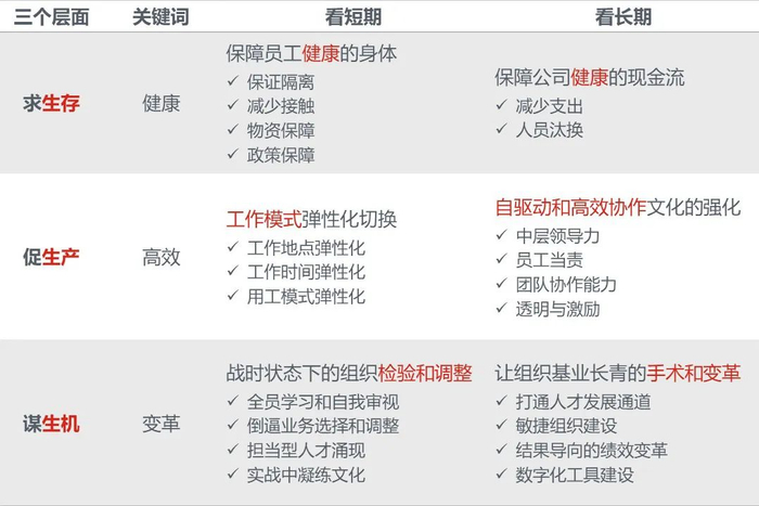 我们从生存、生产、生机三个层面来观察疫情对企业的影响,以及短期和长期分别需要做什么?