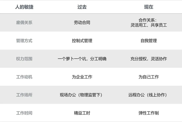 支撑敏捷组织的是具体的人,只有人敏捷了,组织才能跑得动。