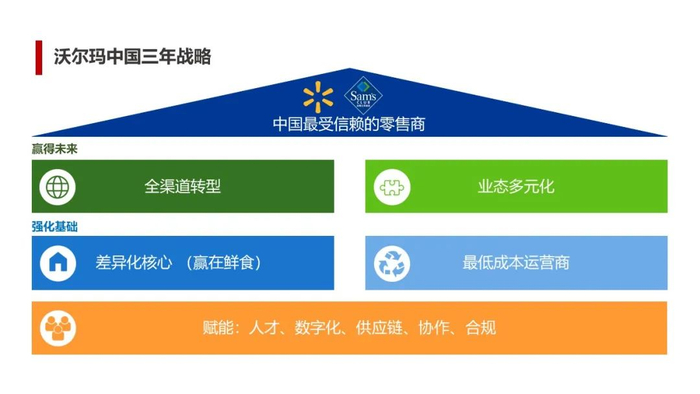 在这个战略体系中,“房屋”最高的一层是信赖。沃尔玛致力成为中国最受信赖的零售商。
