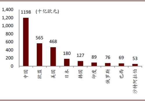 图表: 2018年全球化工业收入规模为33,470亿欧元