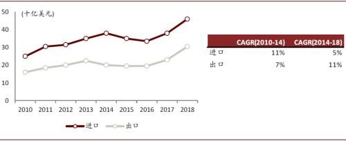 据印度化工与石化部与欧洲化工委员会(Cefic)统计,2018年印度石化工业收入890亿欧元,全球占比2.7%。按当前产量计,印度是世界第12大与亚洲第3大化工国,但按人口平均消费量计算,当前印度是世界平均水平的十分之一。化工产业是印度的重要部门,总收入占印度GDP的3%、出口贡献近15%、进口约占8-9%,总投资额为600亿美元。2000-2017年全球化工产量增长最快的国家与地区分别是中国、中东与印度对应的年均复合增速为12%/8.5%/7.6%。展望未来,印度化工与石化部预计到2025年,印度化工业的复合年增长率(CAGR)为9.3%,高于全球的5.5%。