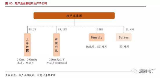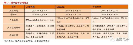 目前公司旗下有四家子公司以生产硅片为主分别是上海新昇、新傲科技、Okmetic和Soitec。上海新昇主要开发适用于40-28nm节点的300mm硅单晶生长、硅片加工、外延片、硅片分析监测等硅片产业化成套量产工艺。目前上海新昇具有300mm硅片产能为10万片/月。新傲科技主要生产8英寸SOI硅片为主,公司已经掌握了SIMOX(注氧隔离)、Bonding(键合)、Simbond(完全自主开发的SOI新技术)和Smart-cut四类SOI晶片制造技术,能够提供100mm(4英寸)、125mm(5英寸)和150mm(6英寸)SOI晶片和SOI外延片,能批量提供8英寸SOI硅片。Okmetic成立于1985年5月,位于芬兰赫尔辛基万塔市,在日本,美国都有制造基地。目前硅产业集团已经完成并购,拥有100%的股份。Okmetic的硅片主要以MEMS、传感器、模拟电路以及分立器件芯片为主,并提供定制硅片服务。主要提供150mm-200mm硅片。Soitec是总部位于法国,是全球最大的SOI硅片提供商,公司主要产品是200mm-300mm SOI硅片,主要用于数字电路,射频电路,功率芯片等等部分。硅产业集团通过并购,以是Soitec第二大股东。