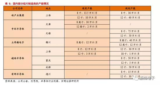 金瑞泓微电子:2018年5月30日,由杭州立昂微电子股份有限公司投资83亿元、年产360万片集成电路用12吋硅片项目正式签约。2018年9月19日,项目承担单位金瑞泓微电子(衢州)有限公司成立,并引入上游多晶硅企业青海黄河上游水电开发有限责任公司作为股东。1)项目一期投资35亿元,租用金瑞泓科技(衢州)有限公司约70亩土地及地面约4万平方米左右厂房,建设年产180万片集成电路用12吋硅片项目。2)二期投资48亿元,建设年产180万片集成电路用12吋硅片项目。3)2019年7月2日,首根12吋半导体级硅单晶棒顺利出炉。