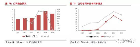 Siltronic是全球排名第三的半导体硅片制造商,主营经营地在德国,于 2015 年在法兰克福证券交易所上市。Siltronic 专注于半导体硅片业务,从 1953 年开 始从事半导体硅片业务的研发工作,1998 年实现 300mm 半导体硅片的试生产, 2004 年 300mm 半导体硅片生产线投产。主要产品包括 125-300mm 半导体硅片。 2016 年至 2019 年,Siltronic 实现营业收入 9.33 亿欧元、11.77 亿欧元、14.57亿欧元、12.70亿欧元,2017 年、2018 年同比增长 26.15%、23.79%、-12.79%。