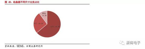 从晶圆的细分看,由于第二代半导体和第三代半导体材料成本较高,并且大部分化合物半导体都是以硅晶圆为衬底,所以全球晶圆衬底中,硅晶圆占比达到95%。从具体晶圆尺寸来看,全球硅晶圆以12寸晶圆为主,2018年全球硅晶圆出货中,12寸晶圆占比达到64%,8寸晶圆达到26%。
