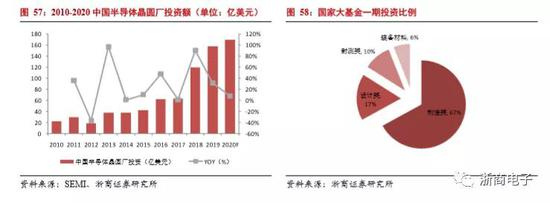 中国大陆晶圆厂建设将迎来高速增长期。从2016年开始,中国大陆开始积极投资建设晶圆厂,陆续掀起建厂热潮,根据SEMI预测,2017-2020年全球将建成投产62座晶圆厂,其中中国有26座,占总数的42%。2018年建造数量为13座,占到了扩产的50%。扩产的结果势必导致晶圆厂的资本支出和设备支出的增加。据SEMI预计,到2020年,中国大陆晶圆厂装机产能达到每月400万片8寸等效晶圆,与2015年的230万相比,年复合增长率为12%,增长速度远远高过其他地区。同时,国家大基金也对半导体制造业大力投入,在大基金一期投资中,其中制造业占比高达67%,远远高于设计业和封测业。