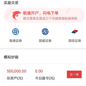 目前,进驻海豚股票的券商有三家,分别为海通证券、国信证券、国盛证券。最初页面显示,这三家入驻券商新开户交易佣金均为万1.2,部分券商新开户用户还可以购买年化收益约6%的理财产品。