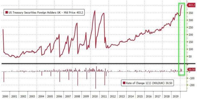 日本和中国的平均持有量仍高于排名前五的其他国家(英国、巴西和爱尔兰)总和,英国持有的美国国债攀升至4032亿美元的历史最高水平。