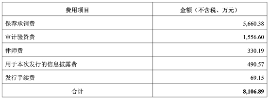 越剑智能此次发行费用为8106.89万元,其中,浙商证券获得保荐承销费5660.38万元,天健会计师事务所(特殊普通合伙)获得审计验资费1556.60万元,国浩律师(杭州)事务所获得律师费330.19万元。
