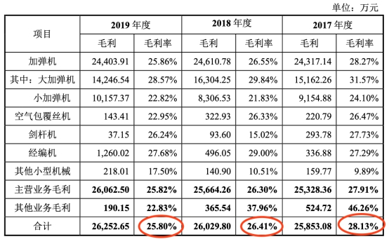 此外,越剑智能毛利率呈逐年下降的趋势。2017年至2019年,公司综合毛利率分别为28.13%、26.41%及25.80%。