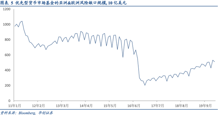 金融监管方面,商业银行与货币市场基金削减离岸美元供给是重点。先是2010年多德-弗兰克法案(The Dodd-Frank Act)授权美国联邦存款保险公司(FDIC)扩大存款保险基金估算基数,之前是以美国境内存款总量为主,2011年4月扩大到所有非权益融资敞口,此后美国境内商业银行就没有动力把客户闲置存款转到离岸分行,因为不能再以此减少准备金上缴规模,获得放贷最大化的好处。再是2016年美国证监会(SEC)拟定的货币市场基金改革落地,在实行浮动净值管理以后,优先型货币市场基金(Prime MMFs)规模急剧萎缩,2016年1月至2020年1月期间,此类基金管理规模从1.6万亿美元回落至1.1万美元,面向欧洲和亚洲的基金敞口从8000亿美元降至6000亿美元。
