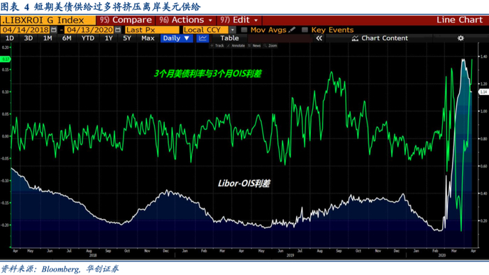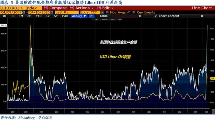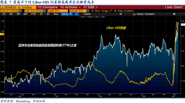 3. 美联储阻止企业部门债务出清,美国财政部发债为财政刺激融资,最终是把流动性压力传递到离岸,推高了Libor-OIS利差以及离岸美元融资成本;