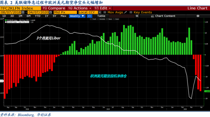 3月3日美联储紧急降息50个基点,联邦基金利率市场几乎认定未来还会大幅度降息,但是欧洲美元期货的投机净多头持仓从123万份降至66万份;待到3月13日美联储降息至零以后,欧洲美元期货持仓从净多头变成净空头,市场大举加仓做空欧洲美元期货押注Libor利率往上,经济前景黯淡的背景下,这不是预期美联储收紧货币政策,而是对企业债务和银行体系的担忧。