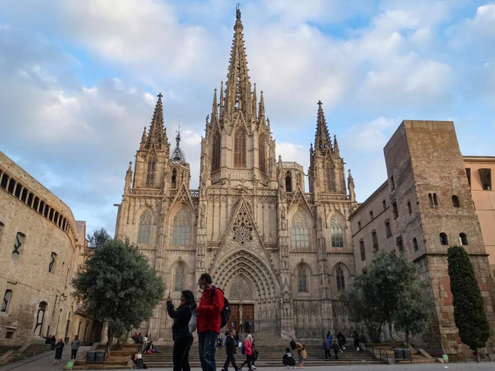 3月14日,西班牙巴塞罗那市老城区内一座教堂因疫情暂时关闭