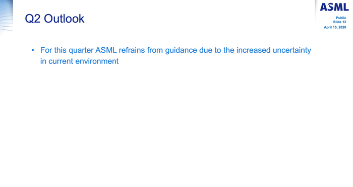 I would like also to take the opportunity to thank the entire ASML team and their families, as well as our many partners who stepped up in these demonic times in support of our company and our stakeholders. I've seen great examples of teamwork and incredible creativity to make sure that we can continue our work, serving our customers, while keeping our people and partners safe. Despite the fact of the current environment provides clearly near-term challenges and uncertainties, the positive industry momentum around innovation and expanding new markets further strengthens our confidence in our future growth scenarios.