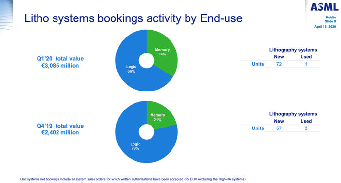 Net sales came in at €2.4 billion below our original guidance of €3.1 billion to €3.3 billion, which was primarily related to COVID-19 impact. Net system sales of €1.6 billion was again heavily weighted towards logic at 73% with the remaining 27% from memory, clearly showing the continued strength of logic business. We actually shipped four EUV systems in Q1, but we're only able to recognize revenue on two of them, which I will explain in more detail later.
