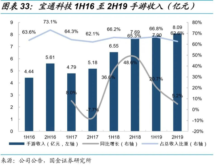 1、2020年4月15日,宝通科技发布2019年年度报告和2020年第一季度业绩报告,公司1Q20实现收入6.40亿元,同比增长6.4%;归母净利润为1.18亿元,同比增长35.3%,主要系旗下易幻网络发行游戏《食物语》上线后表现良好;《三国志M》、《万王之王》、《龙之怒吼》、《完美世界》、《遗忘之境》、《war and magic》等产品持续发力。2019年公司实现收入24.76亿元,同比增长14.3%;归母净利润3.07亿元,同比增长12.9%,主要系主要发行运营产品《完美世界》、《三国志 M》、《万王之王》、《龙族幻想》、《龙之怒吼》、《遗忘之境》、《war and magic》等多款游戏在韩国、中国港台、东南亚、日本和欧美等市场表现优异。