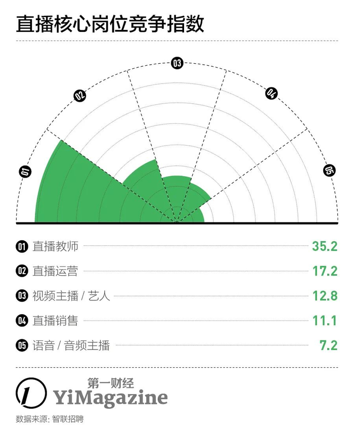 一些数据可以更直观地反映如今直播领域的人才缺口。根据智联招聘发布的《2020年春季直播产业人才报告》显示,春节复工后一个月内,在企业整体招聘职位数与招聘人数同比下降31.43%和28.12%的大背景下,直播相关岗位的招聘职位数逆势上涨了83.95%,招聘人数增幅更是高达近133%。