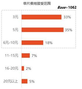 相比较于影院观影平均票价37元左右而言,线上付费观影的成本接受度调研显示,接近九成受访者接受范围在10元以下,其中接近七成观众集中在5元以下。观众对线上观影的价格需求是更加便宜。