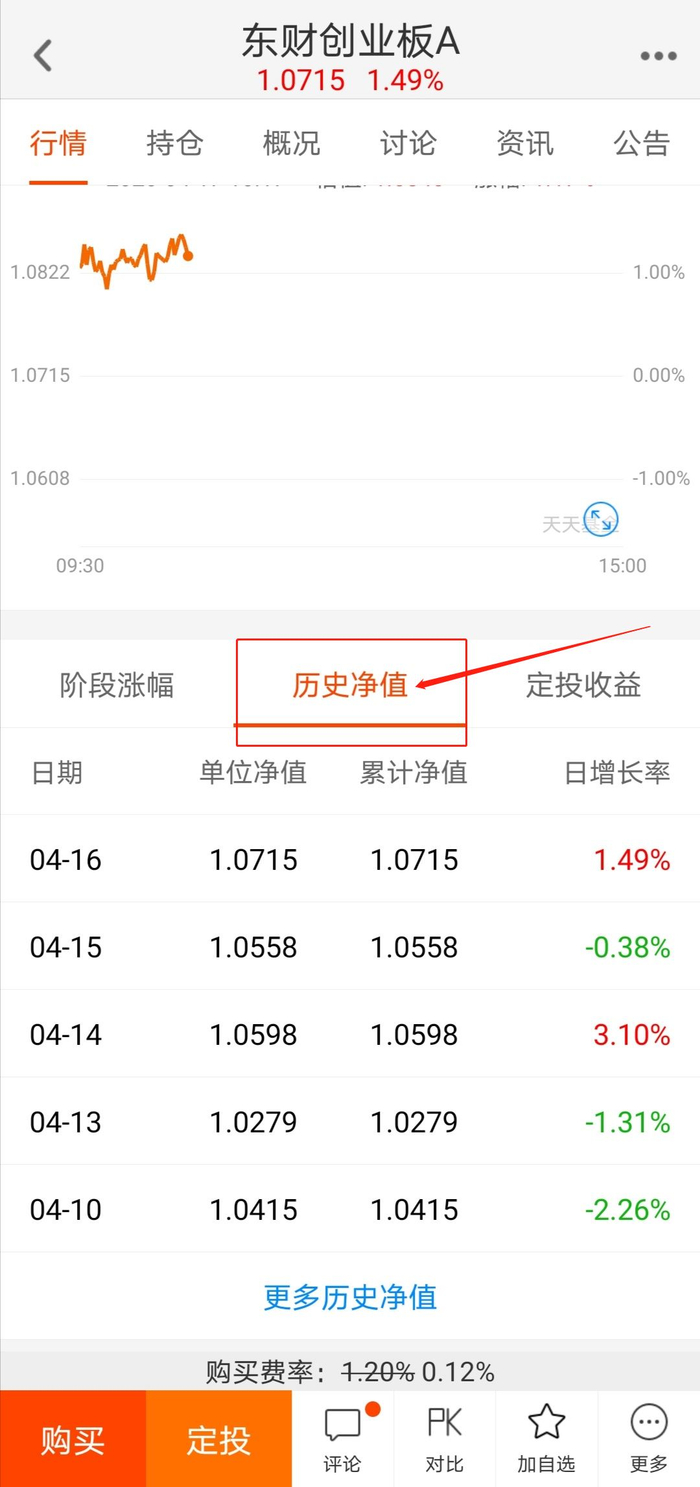 如果想看每一天的净值和涨幅,点击“历史净值”就可以看到之前每一天的相关数据。