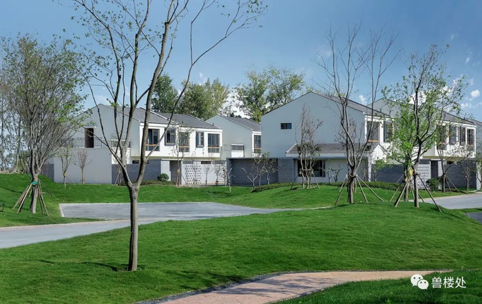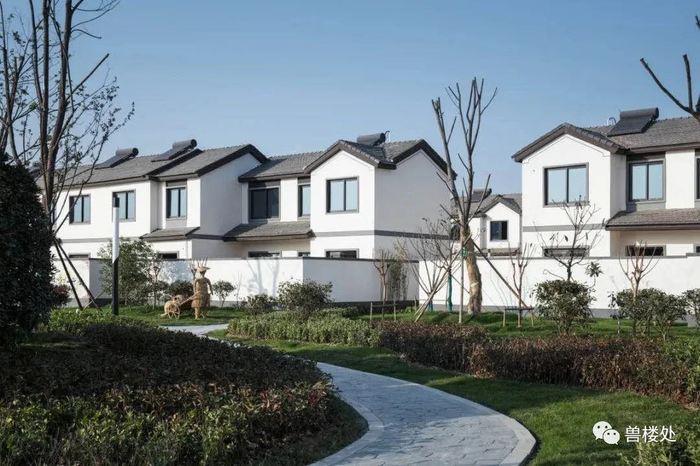 蓝城旗下的蓝城紫金陆续和当地政府签下了六个农居房代建工程。就这样,杭州城一纸风行的桃李春风中式villa,被搬到了几千里外的宿迁农村。这个产品系,是蓝城体系这么多年做中式合院的集大成者。