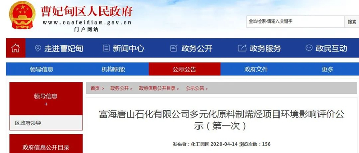 富海唐山石化有限公司多元化原料制烯烃项目环境影响评价公示(第一次)