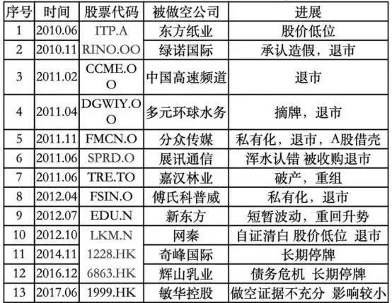 除了近日中枪的瑞幸、好未来、爱奇艺外,还有辉山乳业、东方纸业、绿诺科技、中国高速频道、多元环球水务、嘉汉林业、展讯通信、分众传媒、网秦、奇峰国际等,战绩累累。