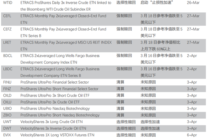 2. 美国多只杠杆、反向ETF/ETN被“逼退”