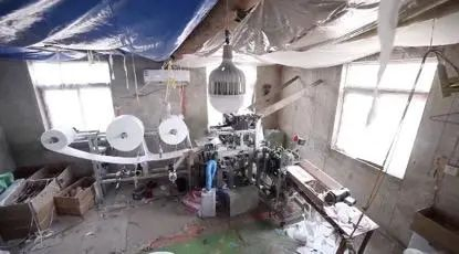 随后,通过对20余名涉案人员开展调查取证工作,一个藏匿于沈阳、辐射全国多省市的伪劣口罩生产销售链条逐渐浮出水面。2月3日晚上,沈阳警方在沈阳市浑南区深井子镇的西靠山村成功找到了生产窝点,当场查扣假冒注册某知名商标及无商标标识成品口罩10000余只,半成品口罩28000余个,用于生产口罩的机器设备13台以及一大批生产原材料。