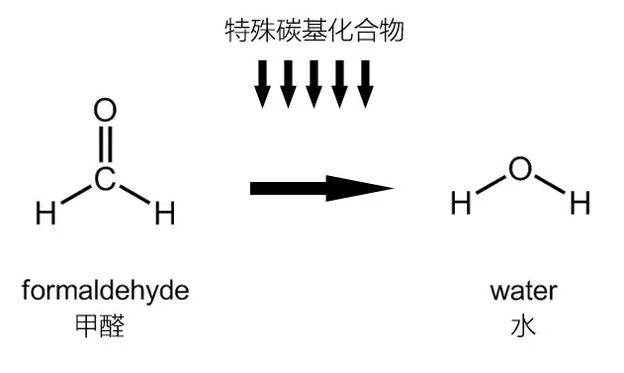 喷雾中含有一种特殊碳基化合物成分,特效碳基成分接触甲醛,将其高效分解为 C(碳元素),从而让甲醛变成无毒无害的水分子,安全无毒。