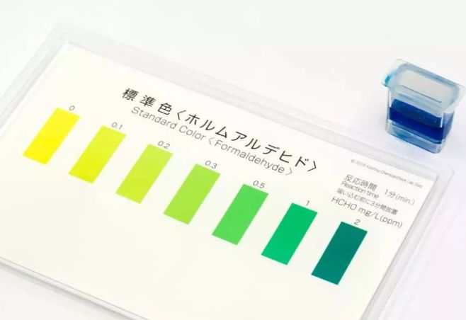 根据显色卡,颜色越浅,说明甲醛含量越低,深蓝色为甲醛超标的福尔马林溶液。