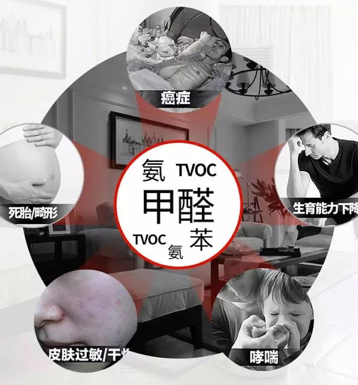 长期吸入甲醛会影响上呼吸道、刺激眼睛、诱发癌症,甚至导致不孕不育、畸形儿……